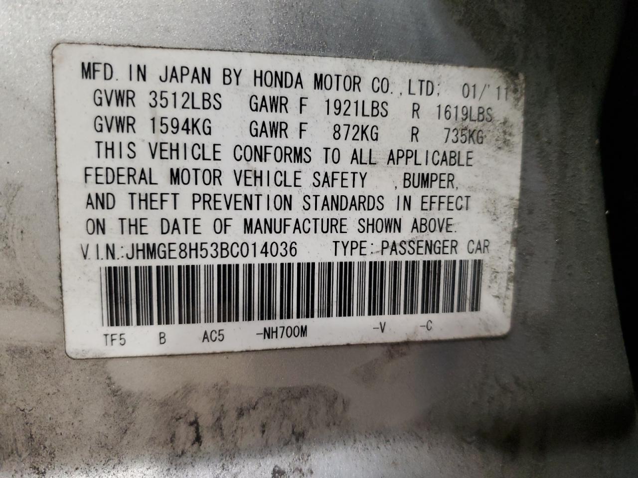 - ВИН: JHMGE8H53BC******
