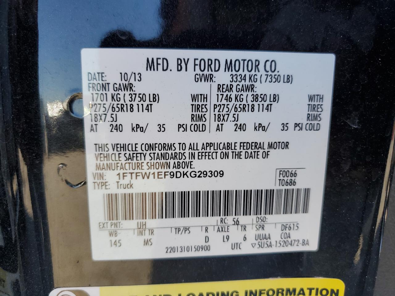 - ВИН: 1FTFW1EF9DK******