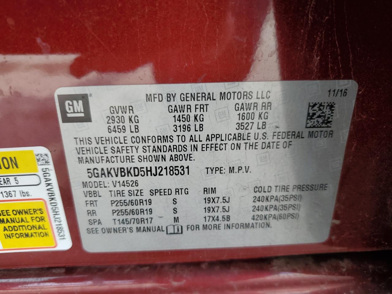 - ВИН: 5GAKVBKD5HJ******