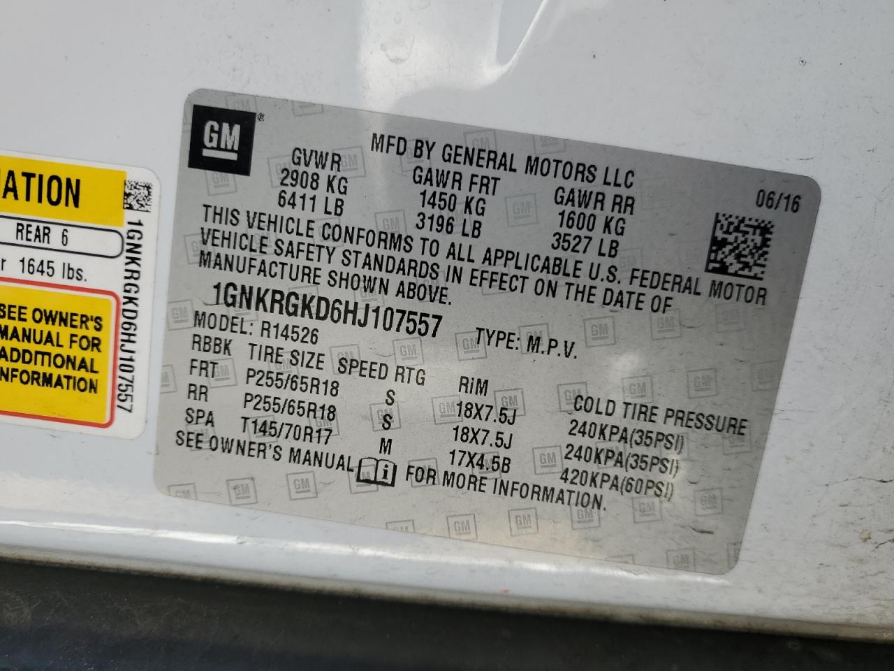 - ВИН: 1GNKRGKD6HJ******