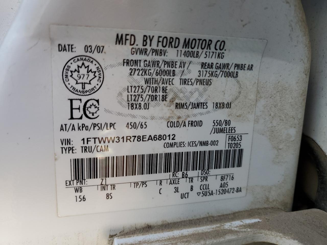 - ВИН: 1FTWW31R78E******