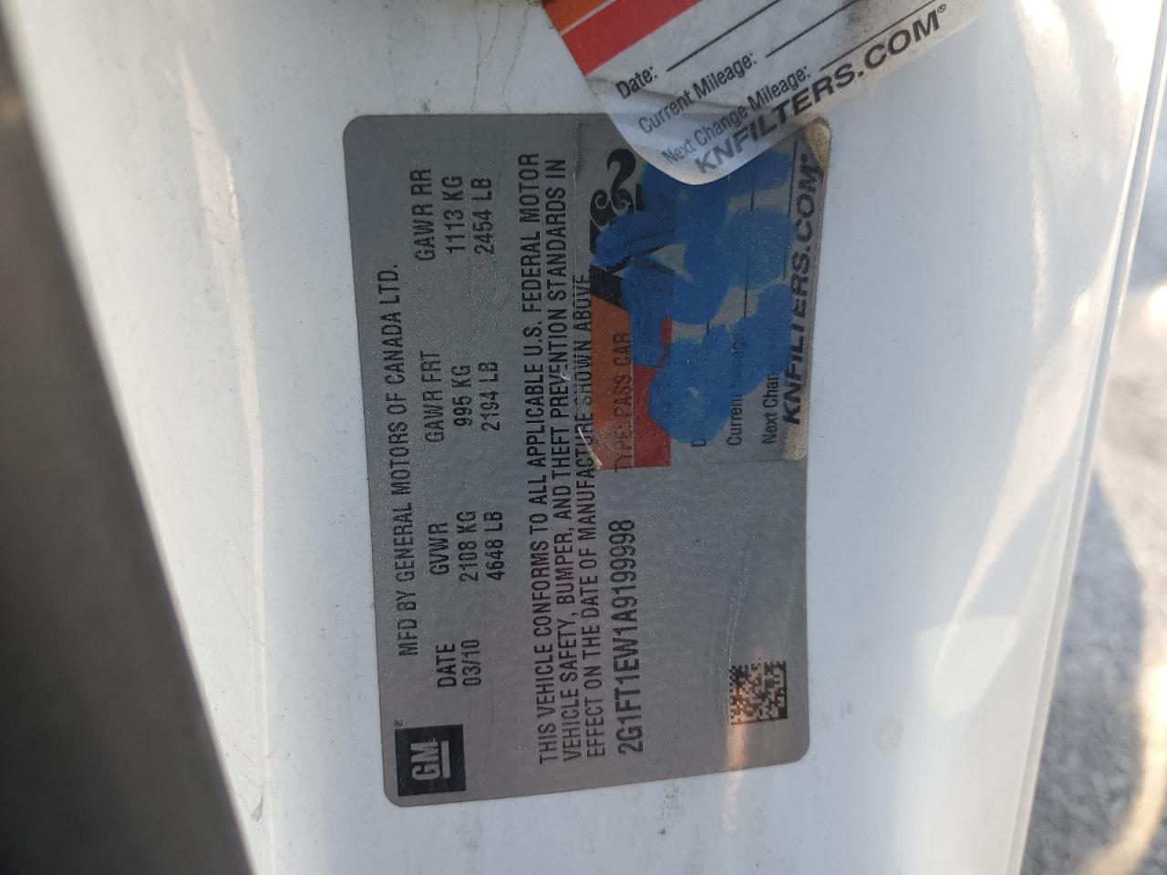 - ВИН: 2G1FT1EW1A9******