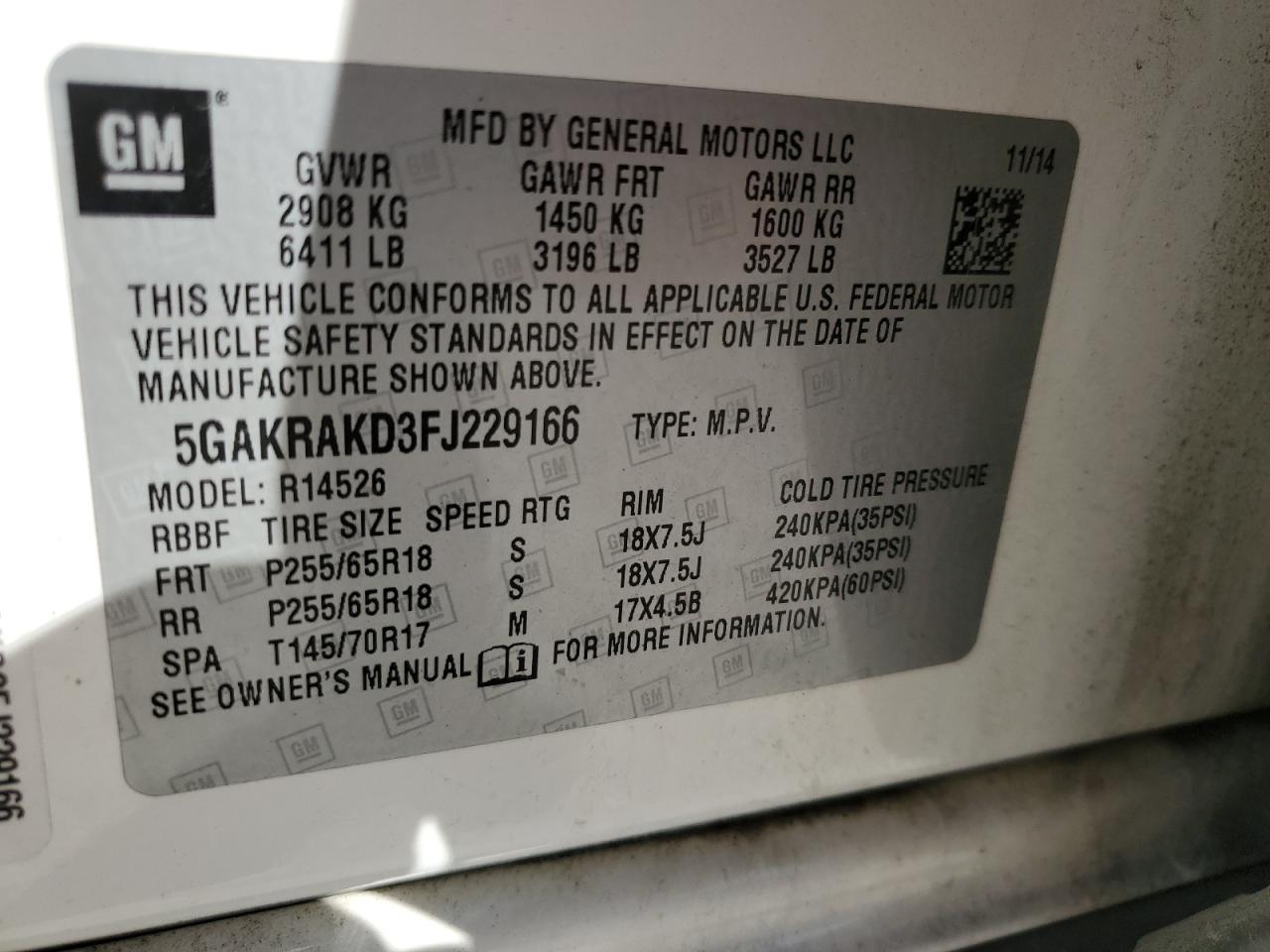 - ВИН: 5GAKRAKD3FJ******