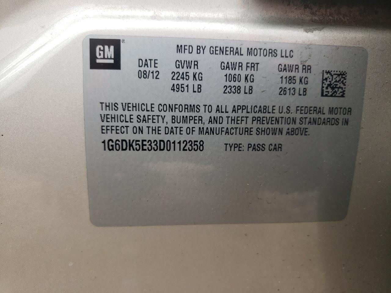 - ВИН: 1G6DK5E33D0******