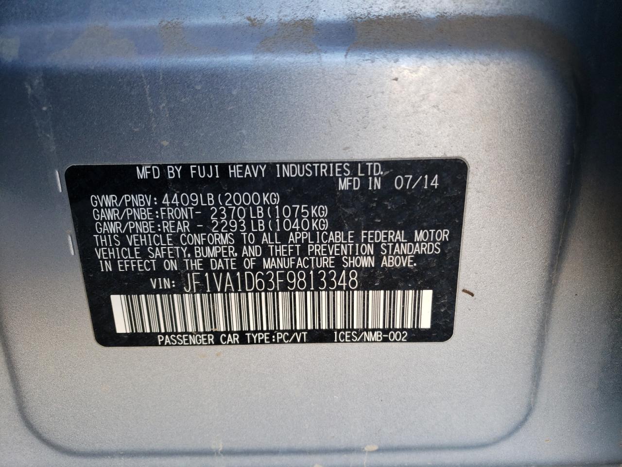 - ВИН: JF1VA1D63F9******
