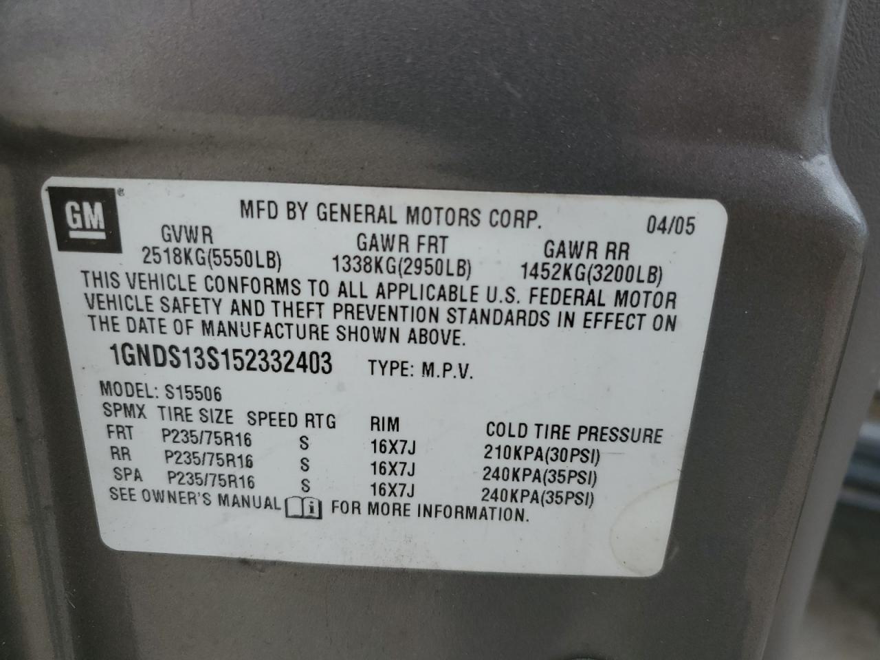 - ВИН: 1GNDS13S152******