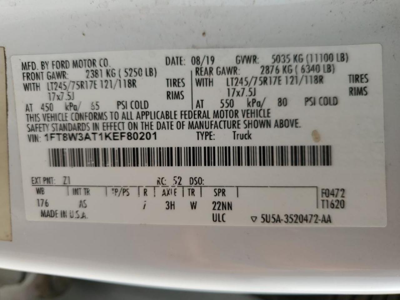 - ВИН: 1FT8W3AT1KE******