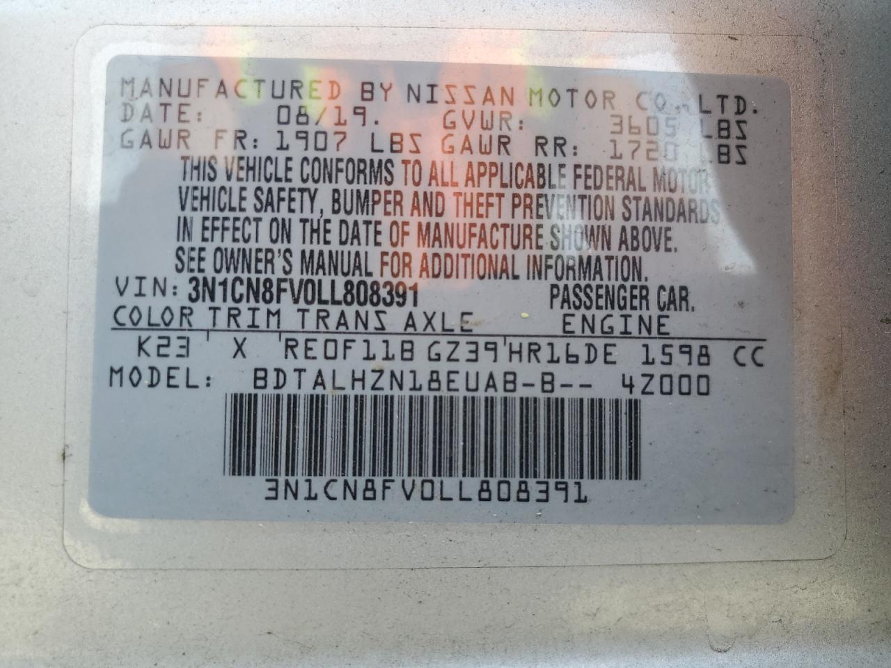 - ВИН: 3N1CN8FV0LL******
