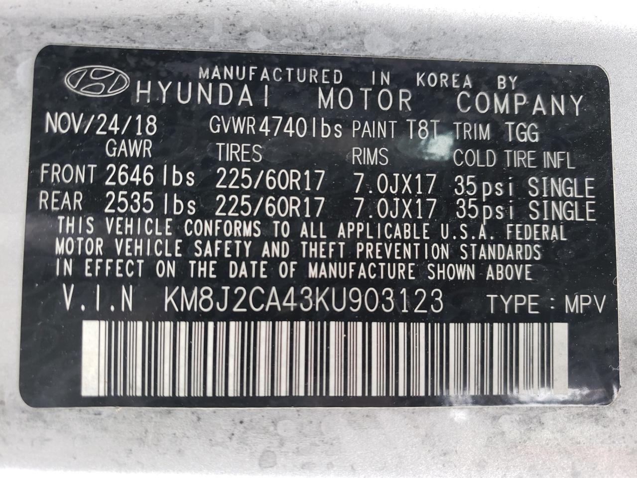 - ВИН: KM8J2CA43KU******