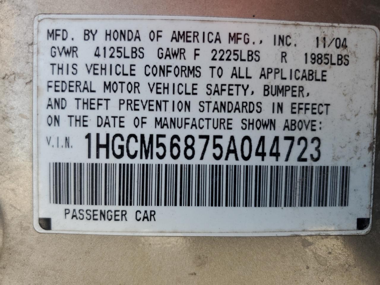 - ВИН: 1HGCM56875A******