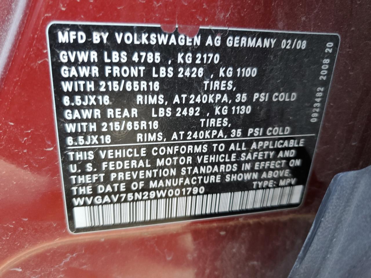 - ВИН: WVGAV75N29W******