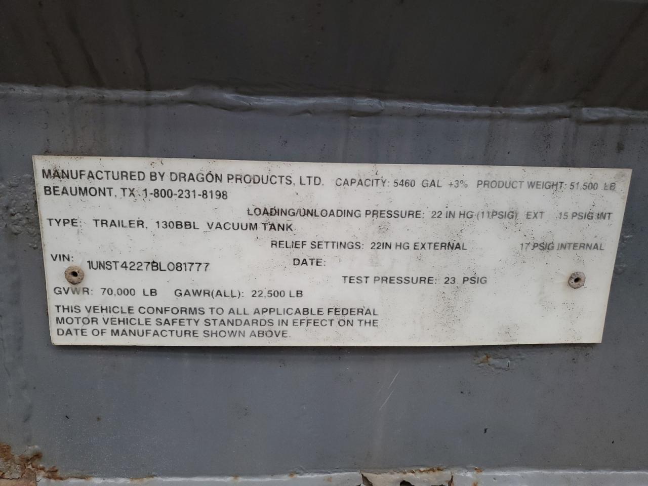 2011 DRAGON PRODUCTS VACUUM TRAILER