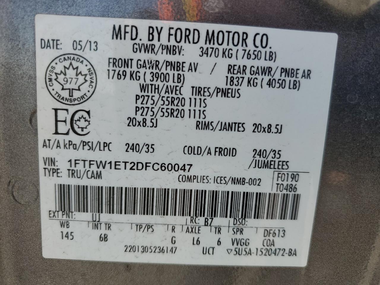 - ВИН: 1FTFW1ET2DF******