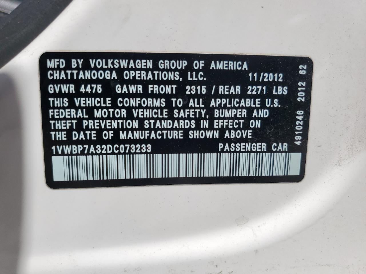 - ВИН: 1VWBP7A32DC******
