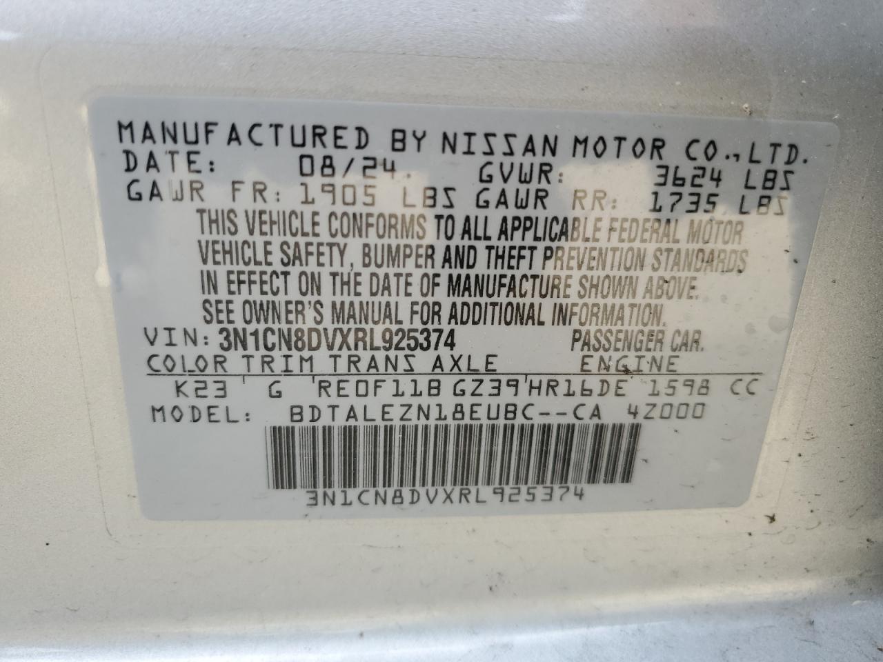 - ВИН: 3N1CN8DVXRL******