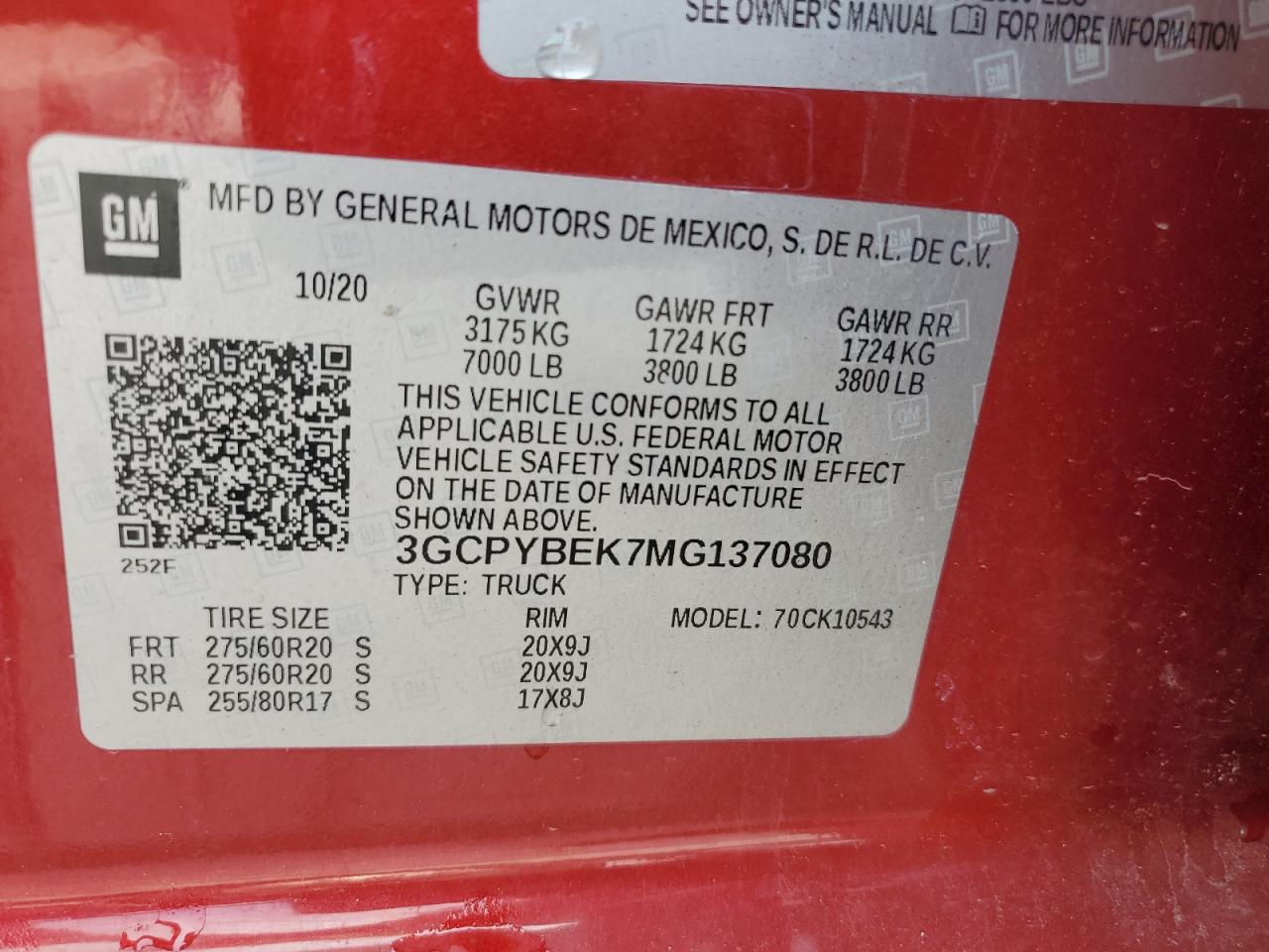 - ВИН: 3GCPYBEK7MG******