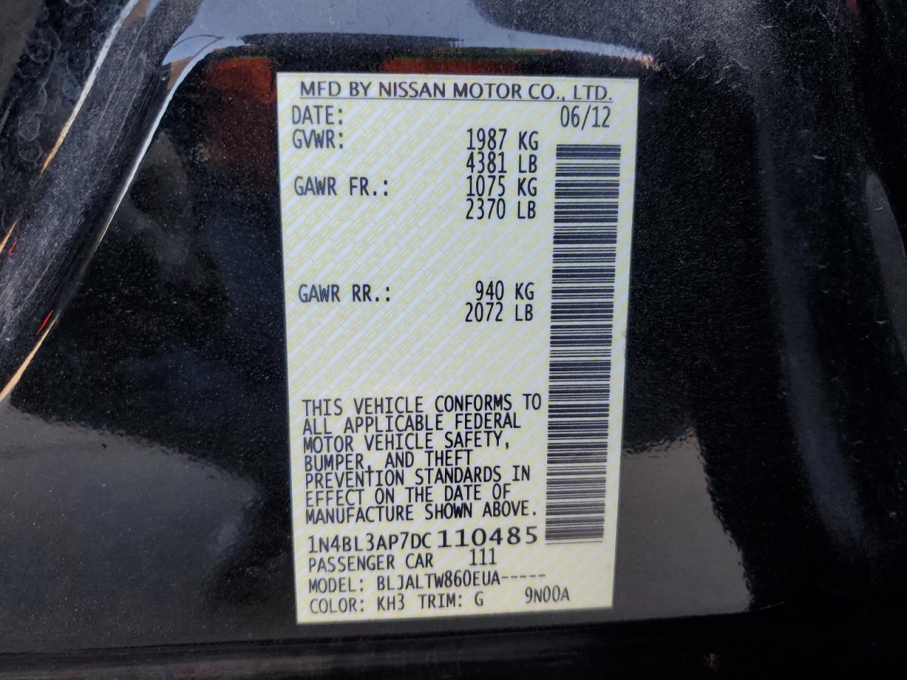 - ВИН: 1N4BL3AP7DC******