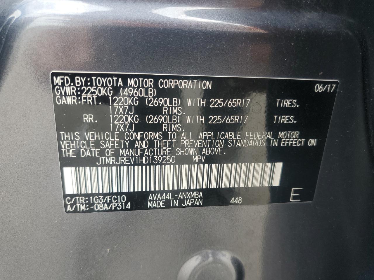 - ВИН: JTMRJREV1HD******