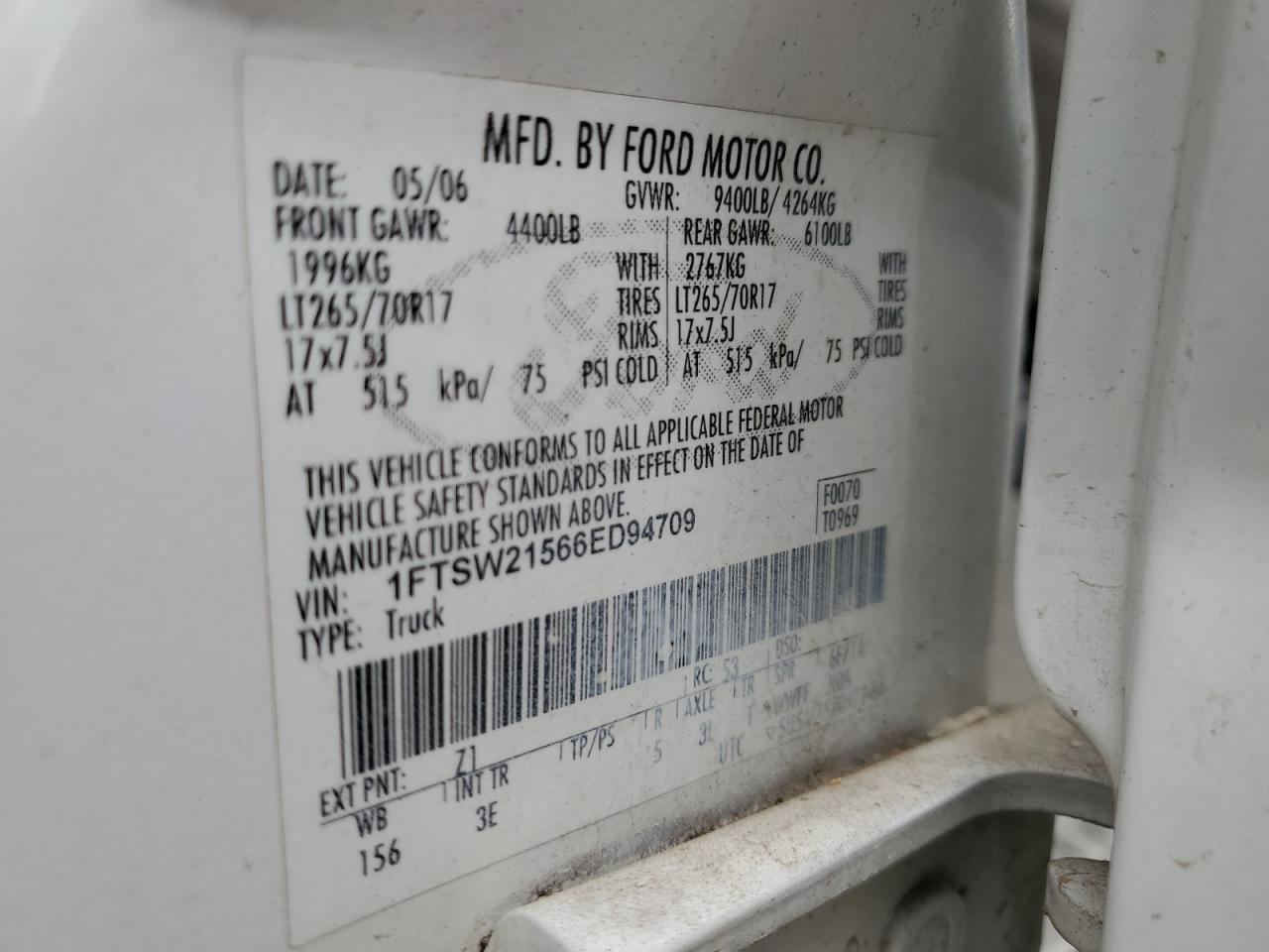 - ВИН: 1FTSW21566E******