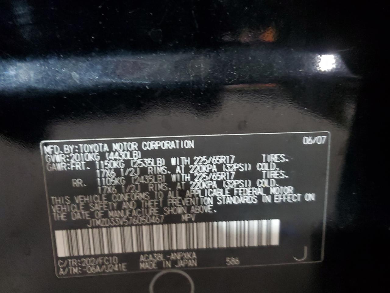 - ВИН: JTMZD33V576******
