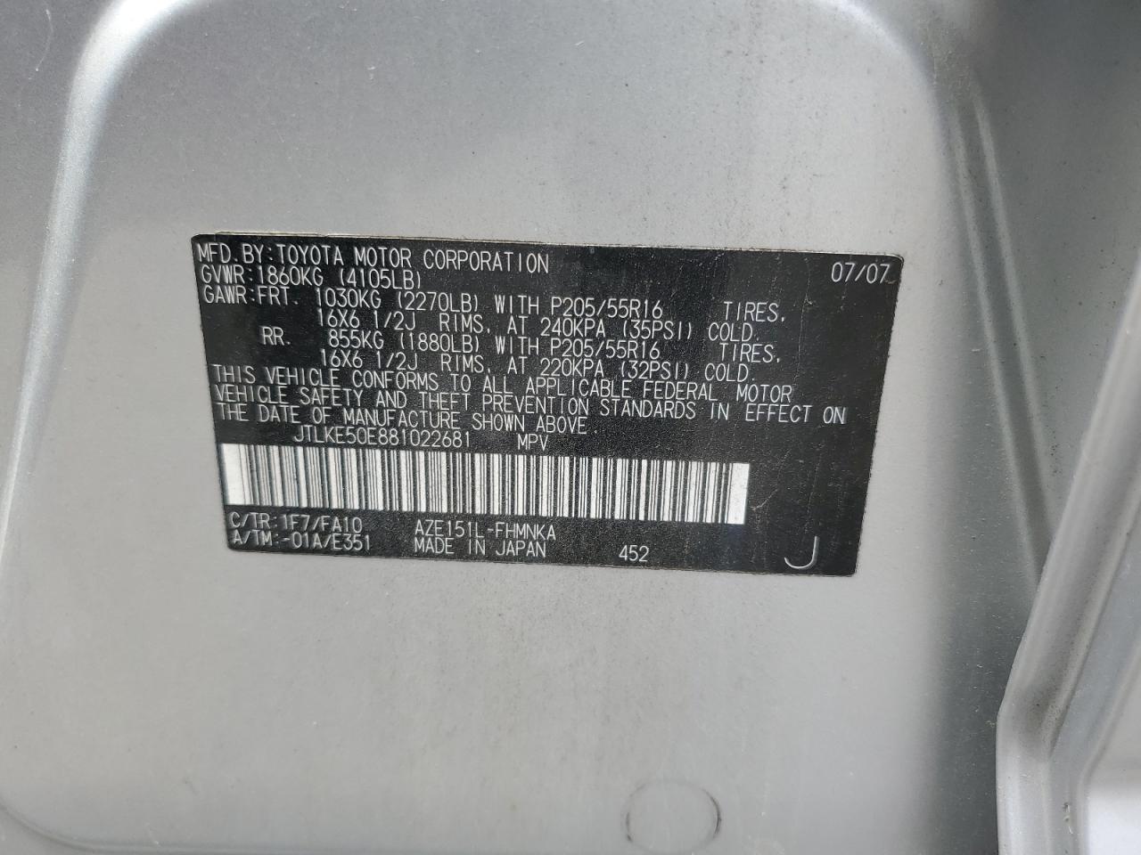 - ВИН: JTLKE50E881******