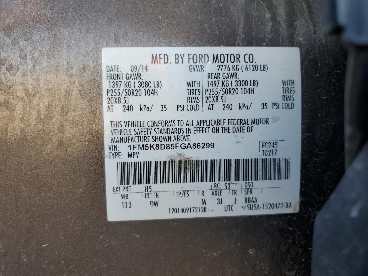 - ВИН: 1FM5K8D85FG******