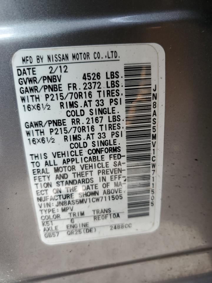 - ВИН: JN8AS5MV1CW******