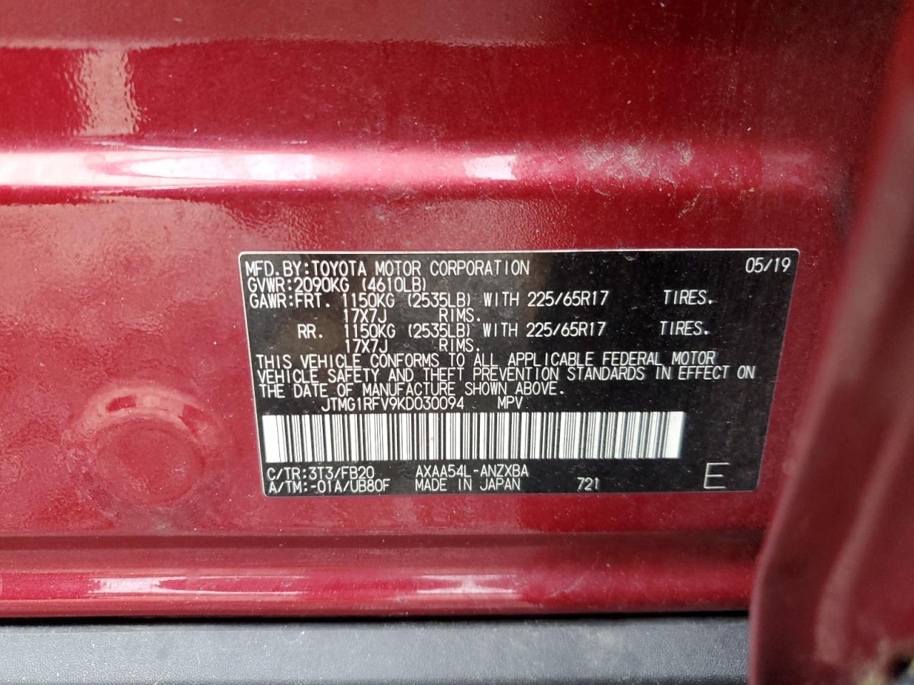 - ВИН: JTMG1RFV9KD******