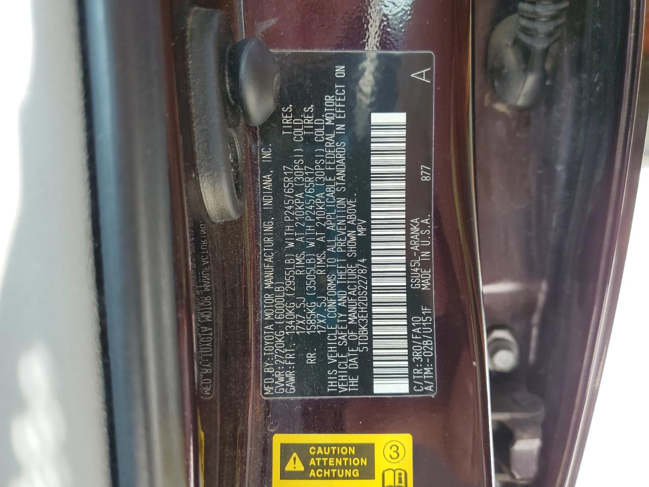 - ВИН: 5TDBK3EH2DS******