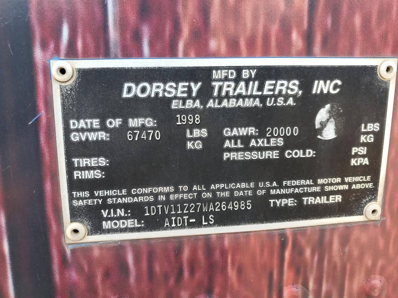 1998 DORSEY AIDT-LS DRY VAN TRAILER