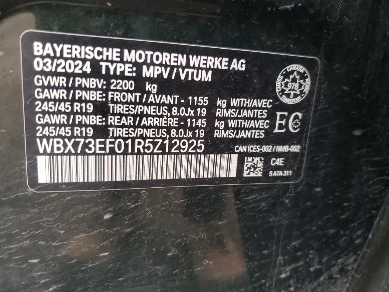 - ВИН: WBX73EF01R5******