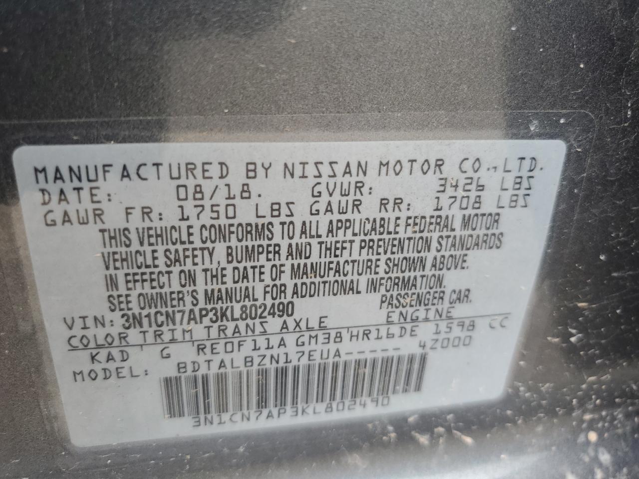 - ВИН: 3N1CN7AP3KL******