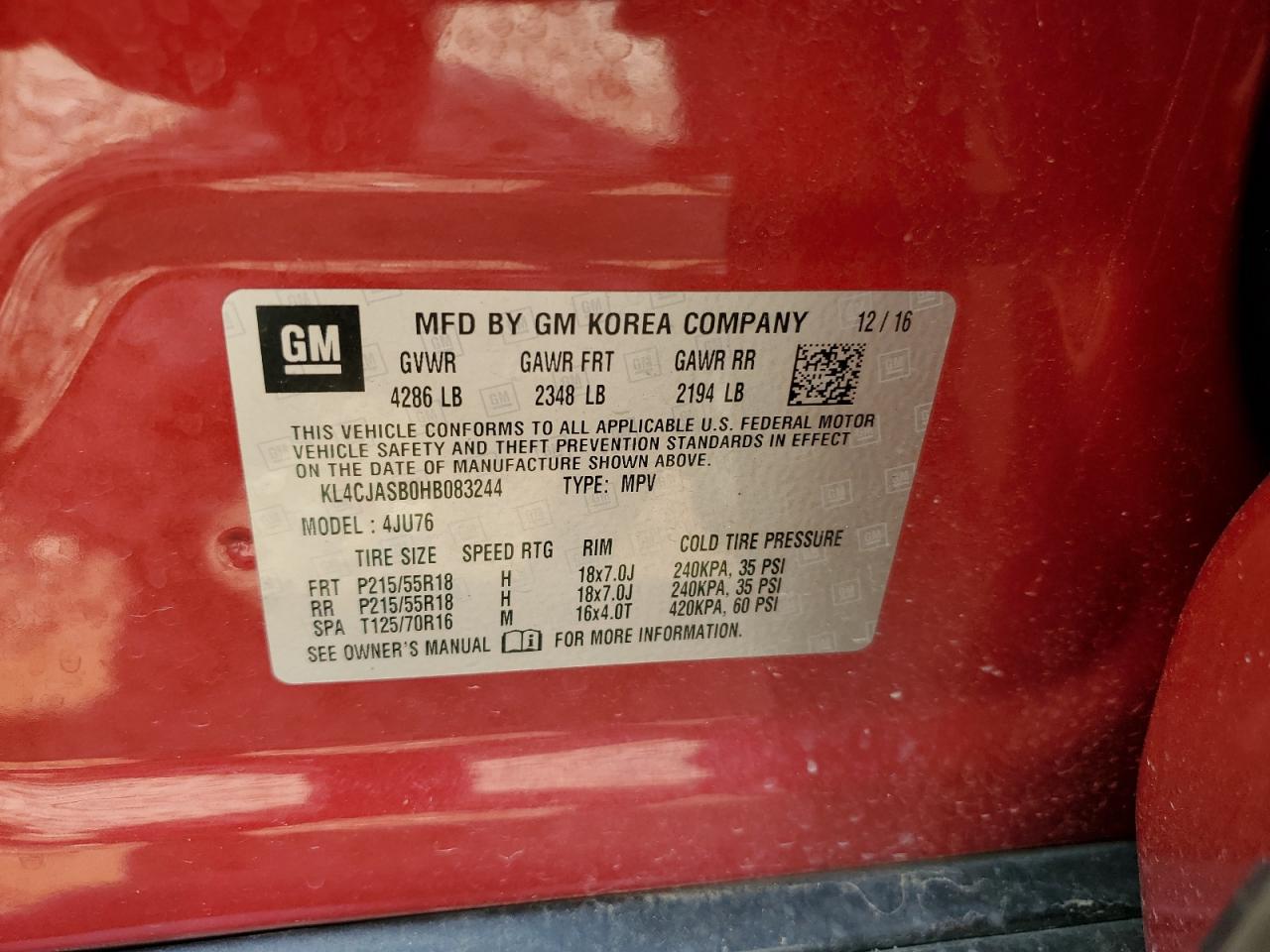 - ВИН: KL4CJASB0HB******