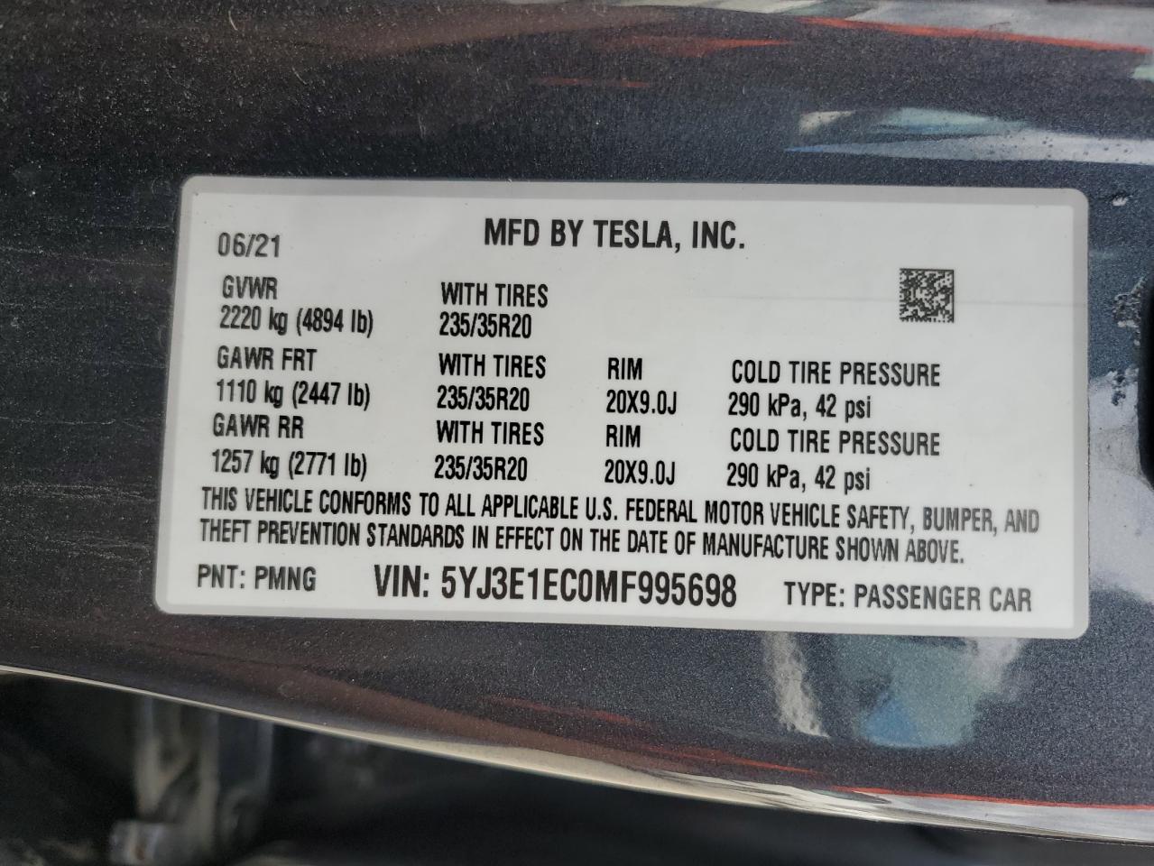 - ВИН: 5YJ3E1EC0MF******