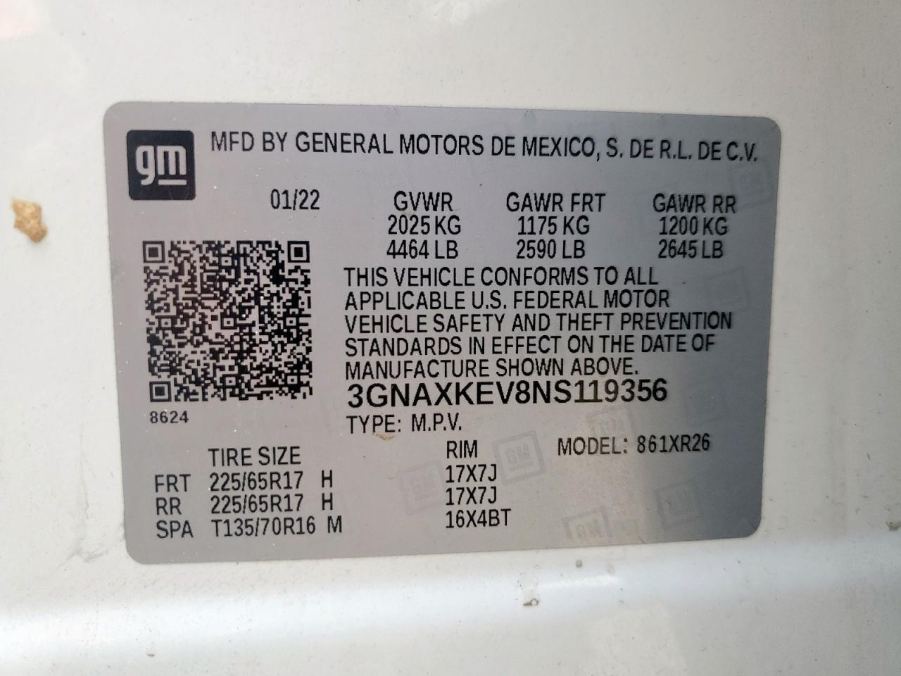 - ВИН: 3GNAXKEV8NS******