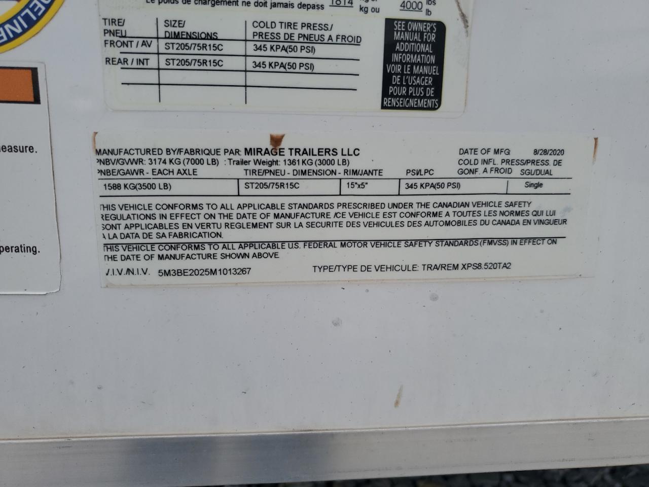 2021 MIRAGE XPS8.520TA2 ENCLOSED CARGO TRAILER из США
