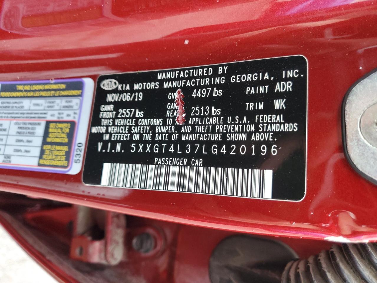 - ВИН: 5XXGT4L37LG******