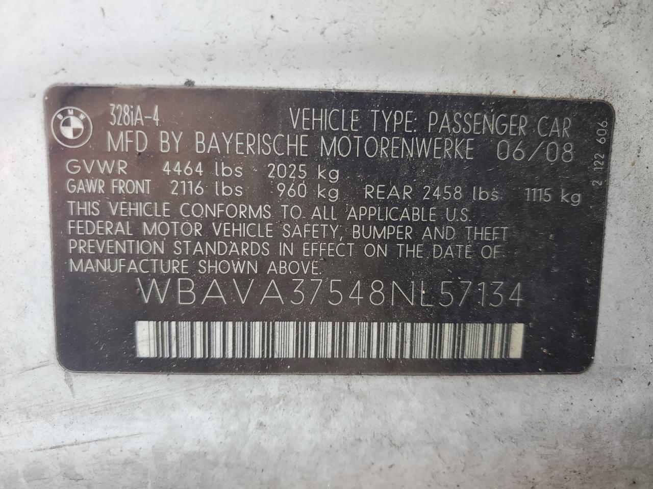 - ВИН: WBAVA37548N******