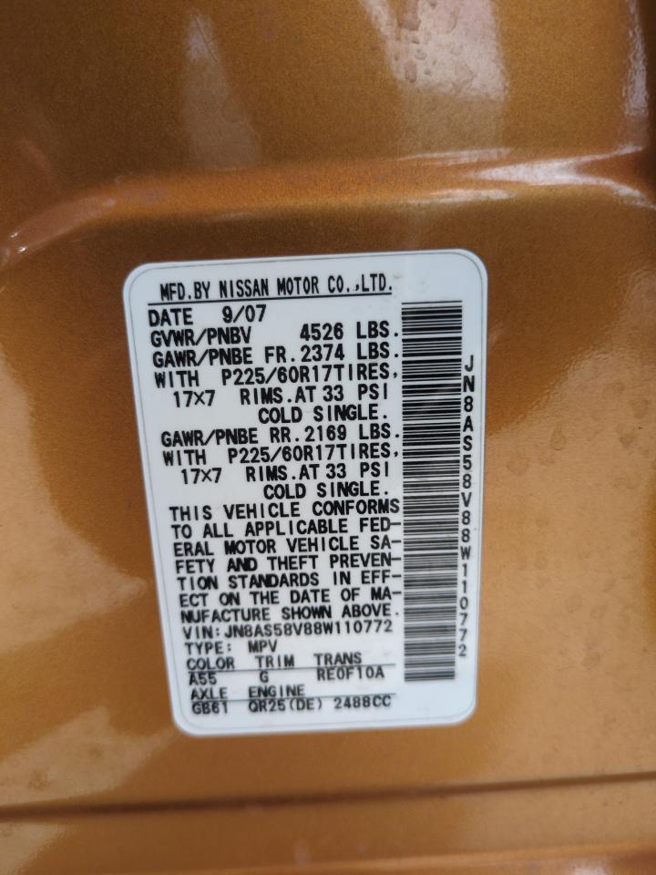 - ВИН: JN8AS58V88W******
