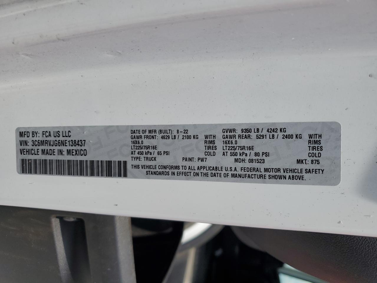 - ВИН: 3C6MRVJG6NE******