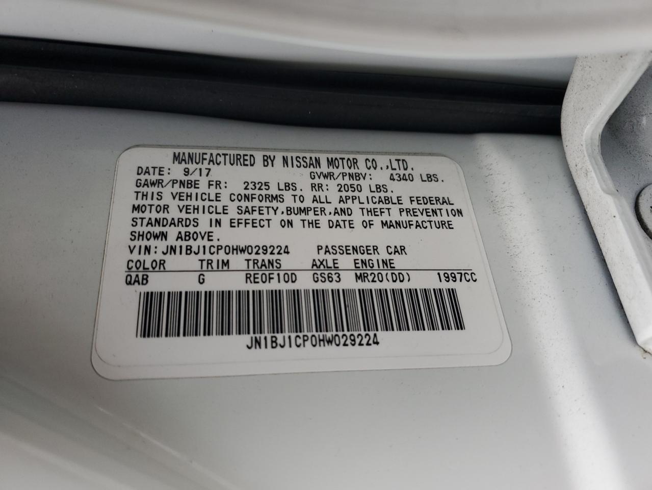 - ВИН: JN1BJ1CP0HW******