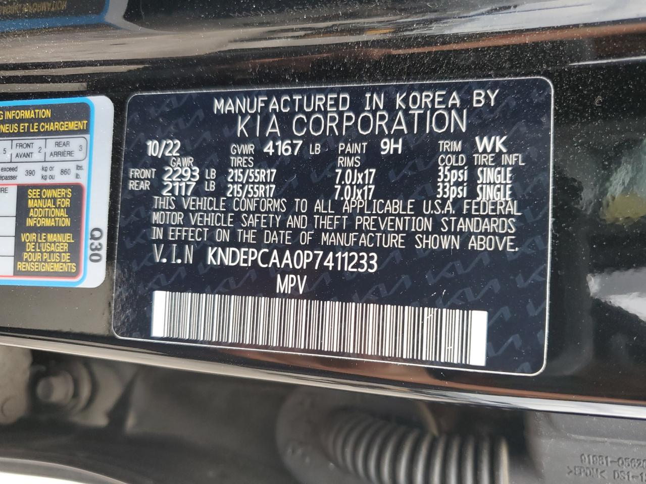 - ВИН: KNDEPCAA0P7******