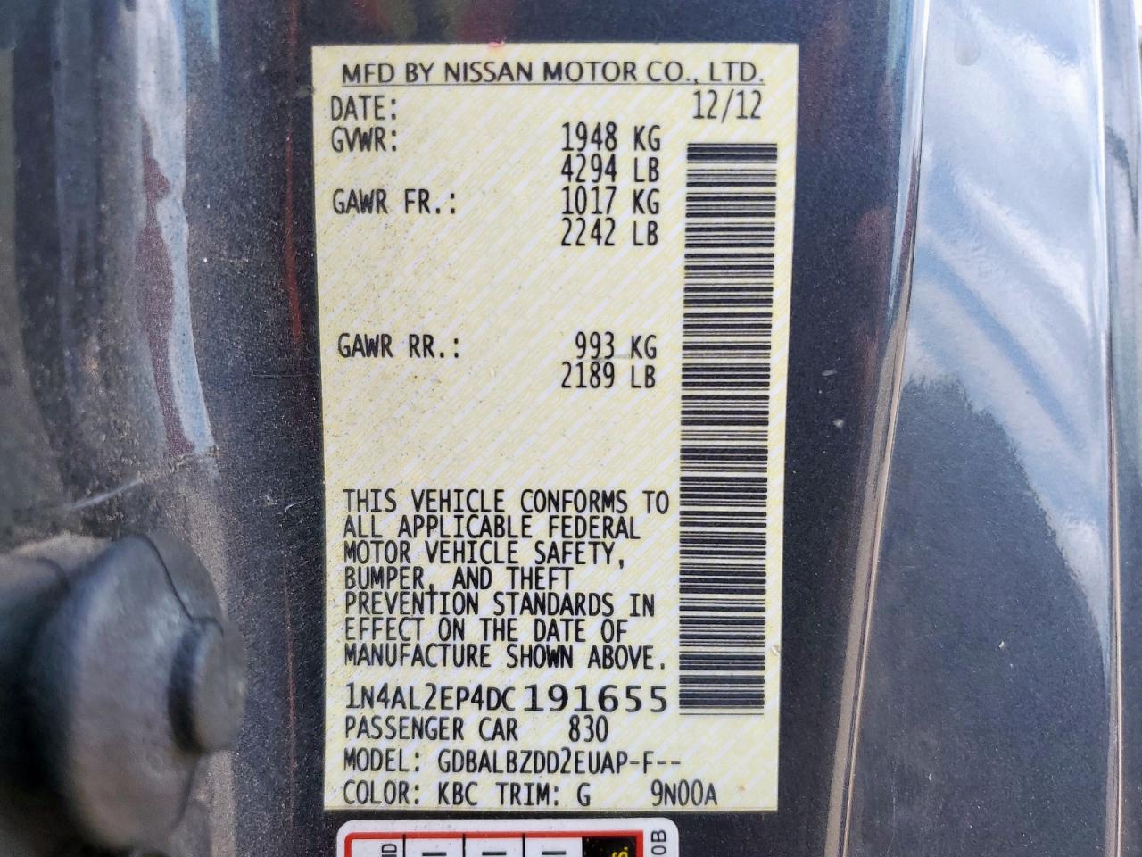 - ВИН: 1N4AL2EP4DC******