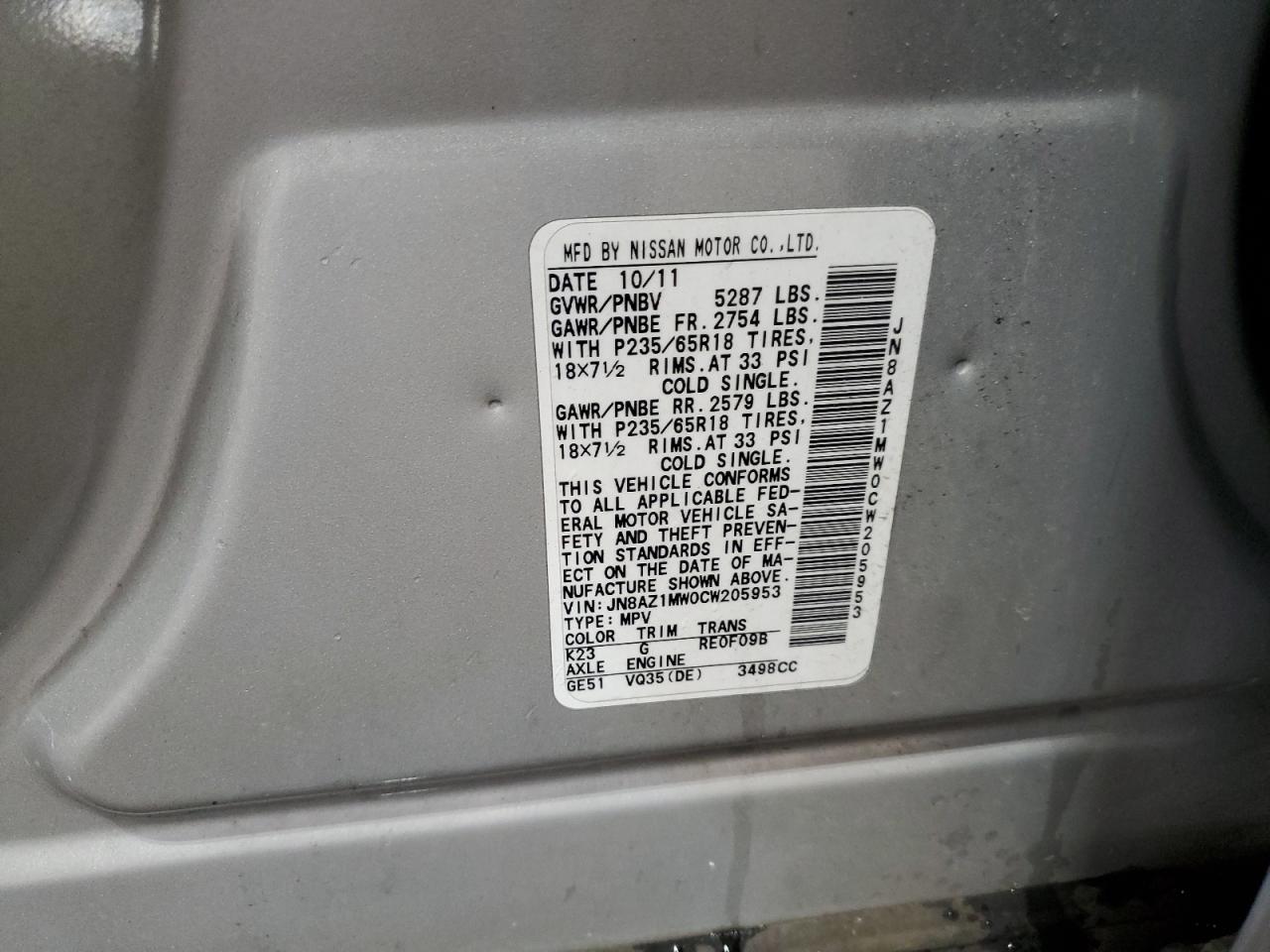 - ВИН: JN8AZ1MW0CW******
