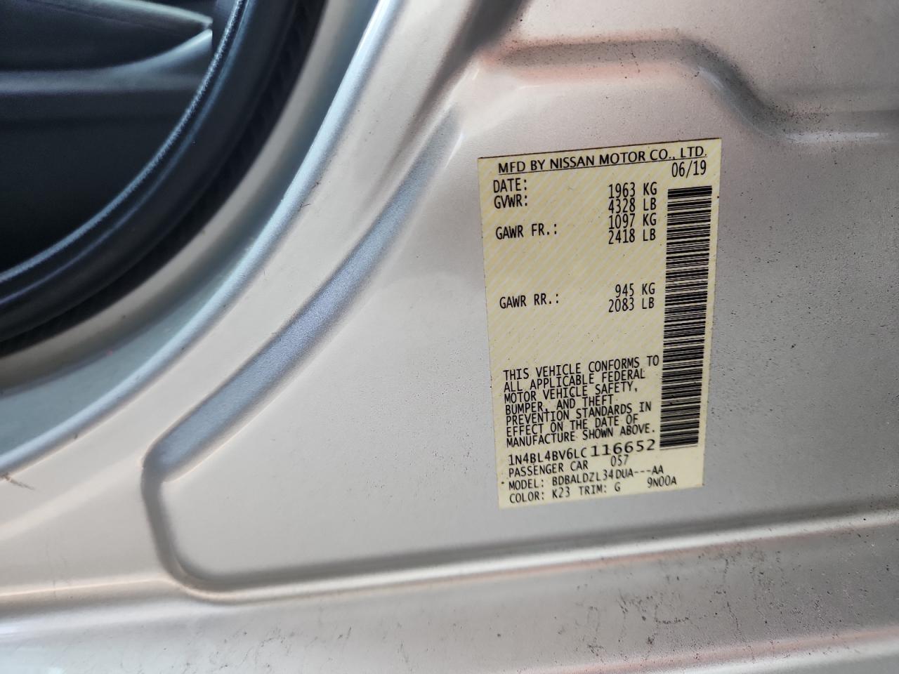 - ВИН: 1N4BL4BV6LC******