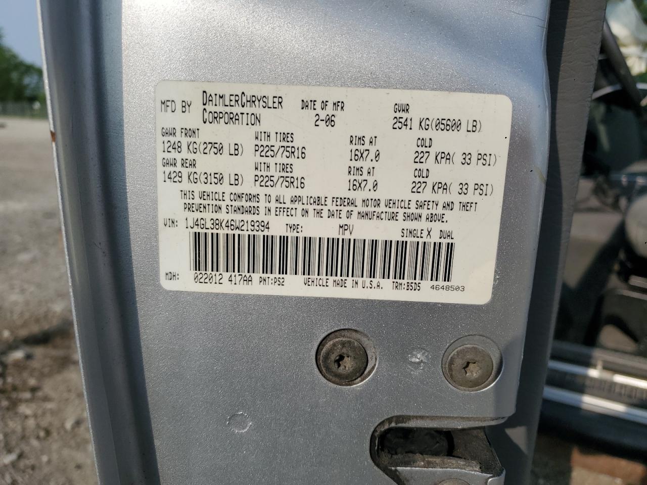 - ВИН: 1J4GL38K46W******