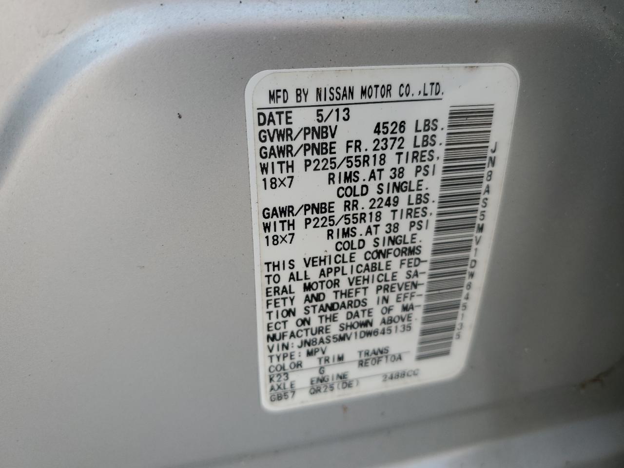 - ВИН: JN8AS5MV1DW******