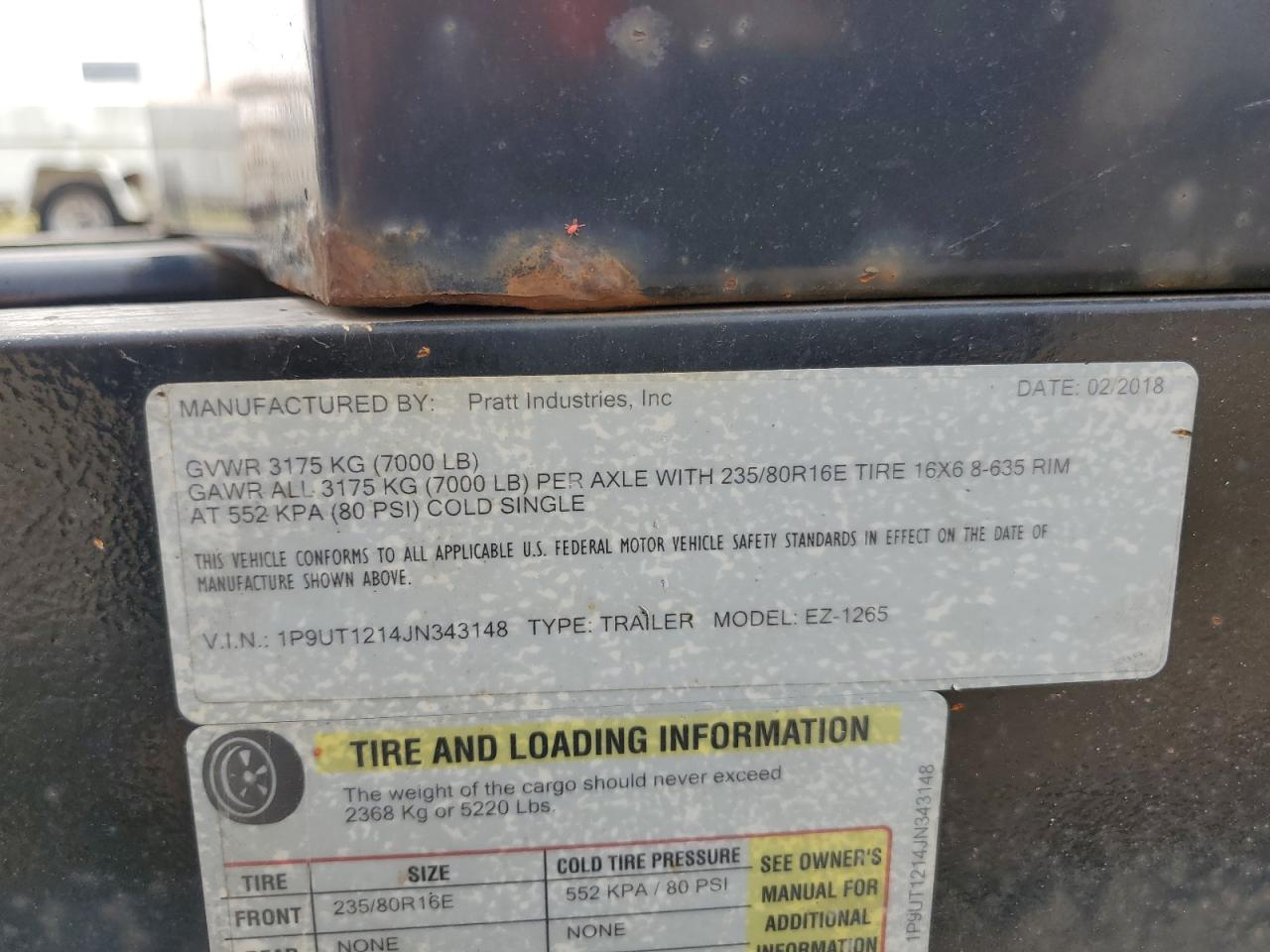 2018 PRATT EZ-1265 UTILITY TRAILER