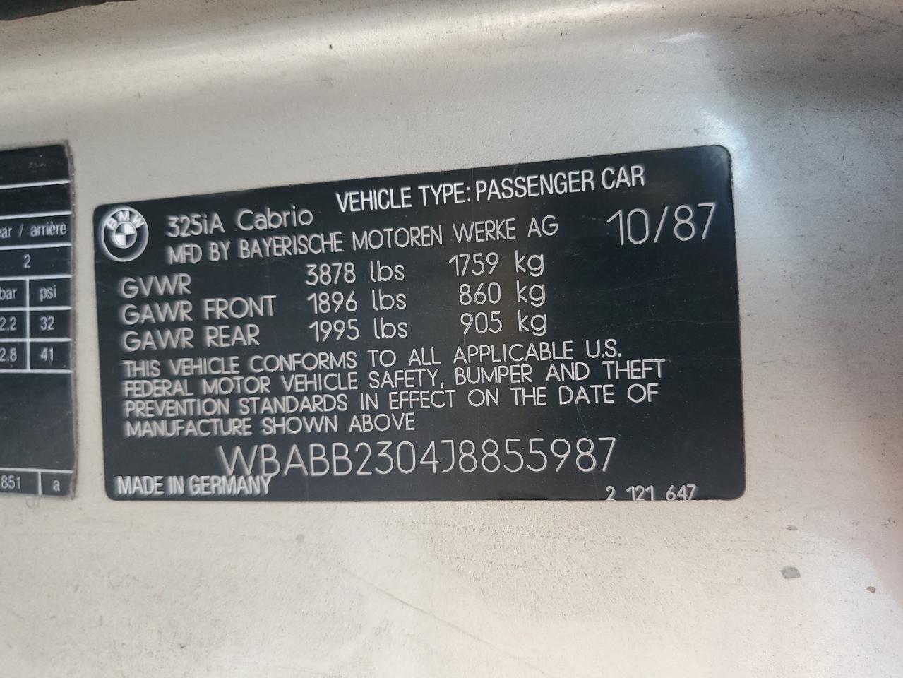 1988 BMW 325 I AUTOMATIC из США
