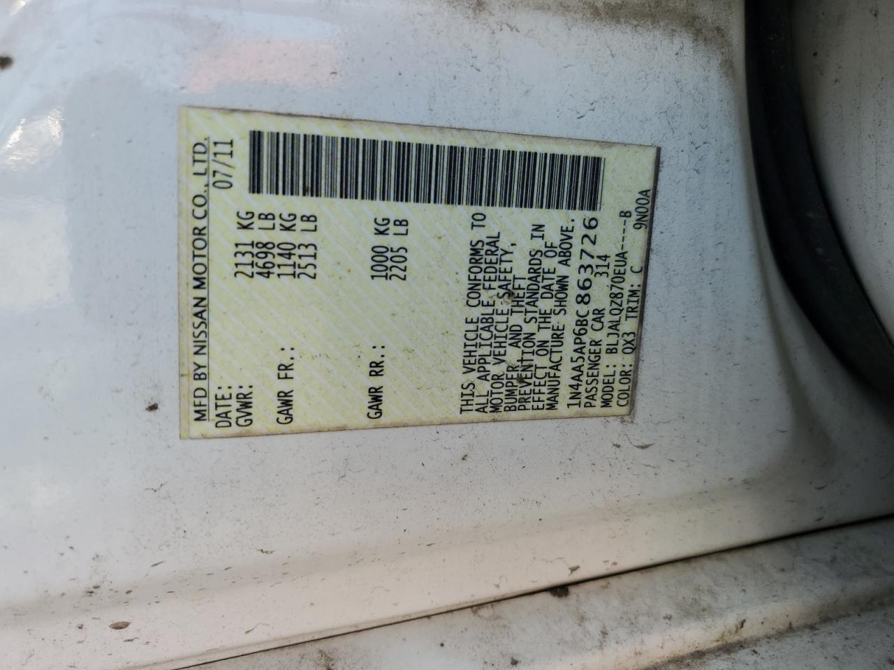 - ВИН: 1N4AA5AP6BC******